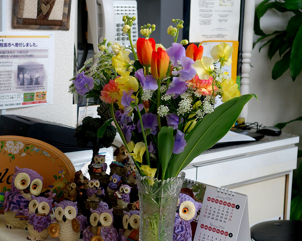 しかし、気分だけでも春らしく、なって頂きたい!と春らしい花を飾らせて頂きました。